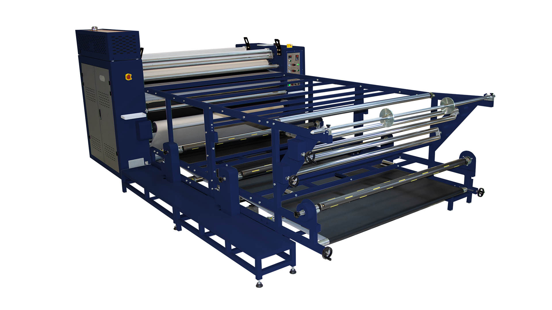 Produk ini dirancang dengan (sistem) oli penuh. Penyesuaian blanket (kain felt) secara otomatis meniadakan kebutuhan untuk penyetelan manual yang sering. Platform pemanjang tradisional, mudah digunakan dan sederhana dioperasikan, (dapat) digunakan untuk kebutuhan roll-to-roll, piece-to-piece (lembar ke lembar), dan kebutuhan lainnya. Sistem penggulung (take-up) kain yang terpisah dapat dipasang sesuai kebutuhan pelanggan